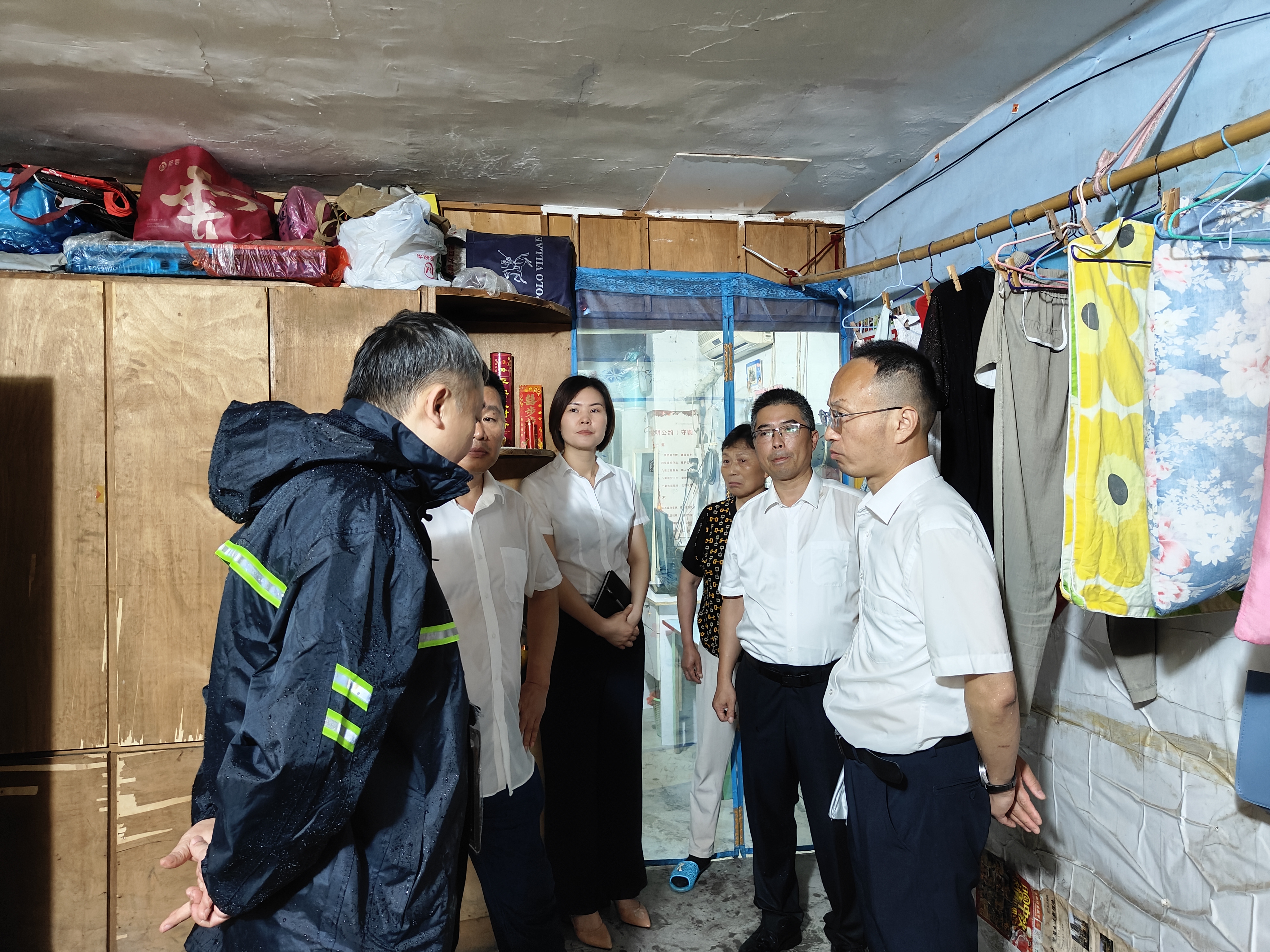大雨磅礴,道路濕滑,周曉彧一行認真排查各小區老舊房屋結構、墻體、屋面等重點部位是否出現險情隱患,并與住戶面對面交流,詳細詢問房屋內外部情況和生活上面臨的困難,與轄區街道相關領導共商應對措施,并對存在一定隱患的房屋住戶進行臨時疏散。