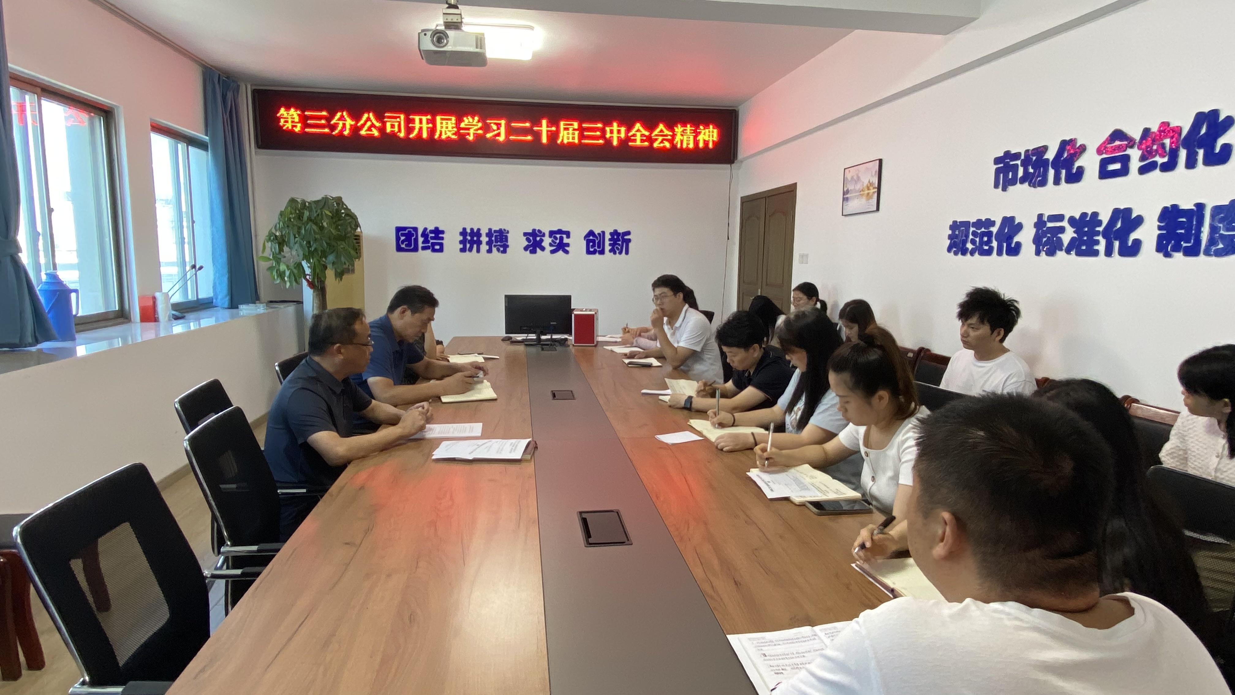 第三分公司黨支部組織召開(kāi)學(xué)習(xí)黨的二十屆三中全會(huì)精神專題會(huì),深入學(xué)習(xí)了黨的二十屆三中全會(huì)公報(bào)內(nèi)容,從全會(huì)的重大意義和重要成果,進(jìn)一步全面深化改革的主題、重要性和必要性以及重大原則、重大舉措,貫徹落實(shí)全會(huì)精神的基本要求等方面進(jìn)行了全面解讀。通過(guò)深入淺出的講解,使全體干部職工對(duì)全會(huì)精神有了更加全面、深刻的理解,進(jìn)一步增強(qiáng)了貫徹落實(shí)的自覺(jué)性和堅(jiān)定性。
