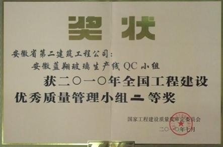 2010年6月28日—7月3日,2010年度全國工程建設行業優秀質量管理小組成果發表會在昆明市舉行。此次參賽的QC成果,均由各省、市(行業)評選、推薦,再在本次會議上發表。來自全國建設行業各單位代表共發表QC成果576項,發表時,由評委現場質詢、打分。經過緊張激烈的角逐,我公司發表的QC成果《控制大體積混凝土施工裂縫》獲得二等獎。