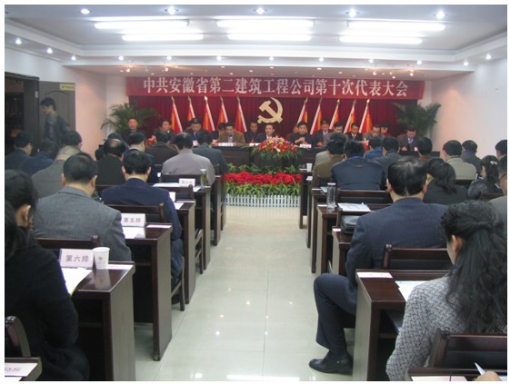 2010年11月25至26日,中共安徽省第二建筑工程公司第十次黨員代表大會(huì)隆重召開(kāi)。來(lái)自生產(chǎn)一線、各部門(mén)、離退休支部等各個(gè)層面的72名黨員代表參加了大會(huì),安徽建工集團(tuán)有限公司黨委書(shū)記張海平、紀(jì)委書(shū)記、工會(huì)主席劉振武、黨委工作部主任吳曉武等出席大會(huì)開(kāi)幕式。
