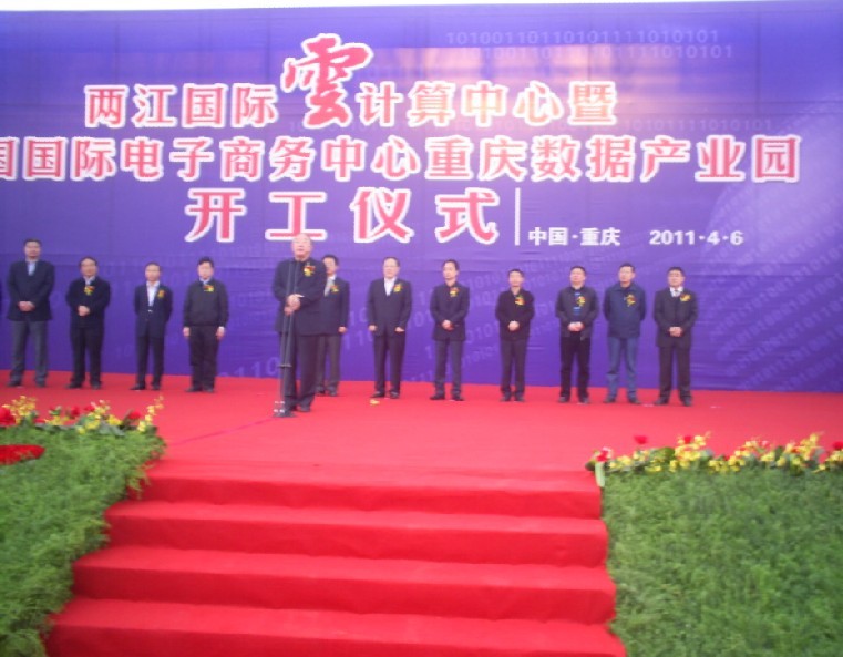 4月6日上午,重慶市兩江新區隆重舉行兩江國際云計算中心暨中國國際電子商務中心重慶數據產業園開工儀式,重慶市委副書記、市長黃奇帆以及重慶市有關領導,商務部領導,安徽建工集團有限公司董事長、總經理胡運成出席了開工儀式,隨同胡總參加開工儀式的還有安徽建工集團副總經理王元曦,國內公司總經理陳傳文,集團董事、安徽二建總經理費瑞林,副總經理劉國良等。