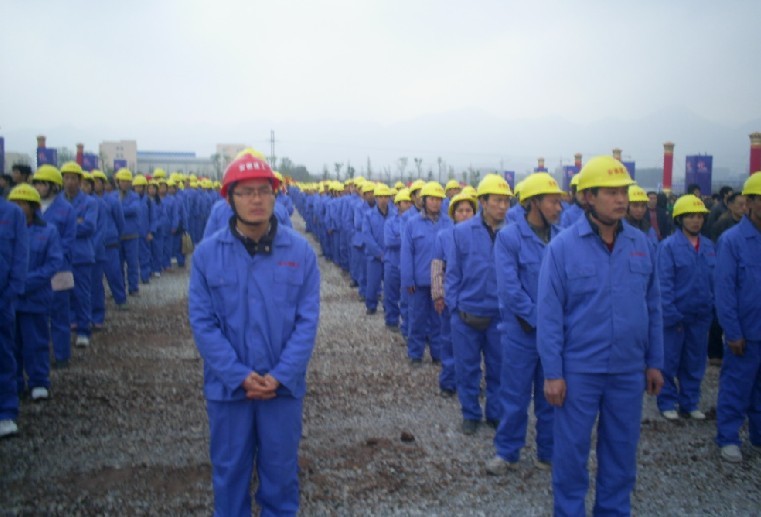 圖為參加開工儀式的安徽建工施工隊伍