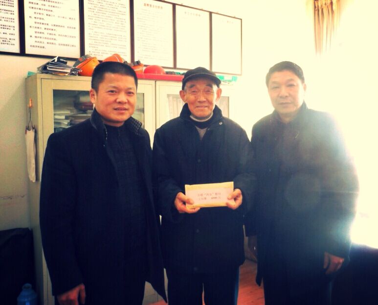 新年來(lái)臨前夕,2014年12月29日,公司黨委書(shū)記劉賢奇、工會(huì)主席李林等看望省級(jí)勞動(dòng)模范王紹衡,將“兩節(jié)”慰問(wèn)金送到王紹衡手中,并再三叮囑勞模保重身體,預(yù)祝老人“兩節(jié)”愉快。此次公司工會(huì)共為11名省部級(jí)勞模發(fā)放兩節(jié)慰問(wèn)金74200元。