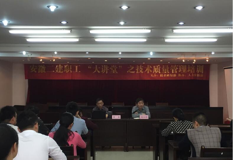 為響應安徽二建職工“大講堂”活動號召,2016年5月24日上午8:30,技術質量部和人力資源部共同組織的技術質量管理培訓在公司三樓會議室舉行,公司總工程師邱立龍出席,機關本部所屬各單位和項目部共30余人參加培訓。