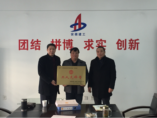 隨后,李主席代表安徽二建工會授予海外公司太和標(biāo)準(zhǔn)廠房項目部“工人先鋒號”稱號。