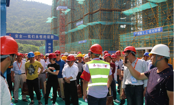 5月27日上午,由宿松縣住建局、安徽二建公司、安建地產(chǎn)宿松有限公司聯(lián)合舉辦的“建筑施工安全質(zhì)量標準化現(xiàn)場觀摩會”在安建·龍溪觀邸項目舉行。宿松縣住建局局長余勁松、副局長劉勝新、二建公司安全總監(jiān)曹建及宿松縣建筑行業(yè)單位近200人參加了此次觀摩會,重點對該項目質(zhì)量安全標準化工地、綠色文明施工、科學化施工建造、人性化服務等方面進行了全方位的觀摩學習。