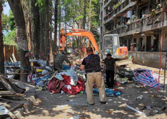 后勤綜合服務部和城管科工作人員聯合拆除違章搭建