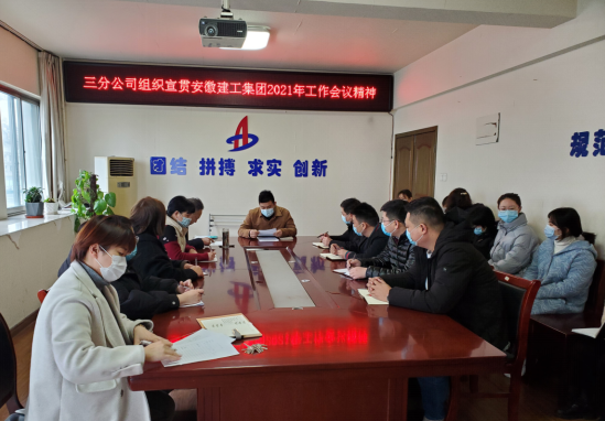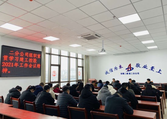 為及時(shí)傳達(dá)落實(shí)安徽建工集團(tuán)控股有限公司2021年工作會(huì)議精神,近期,安徽二建公司通過(guò)制作會(huì)議內(nèi)容展板、召開(kāi)學(xué)習(xí)會(huì)議等方式,供廣大職工學(xué)習(xí)。通過(guò)學(xué)習(xí)宣貫,定信心、鼓干勁、葆初心、明思路,確保會(huì)議精神傳達(dá)到每一個(gè)崗位、每一名員工。引導(dǎo)員工深刻理解會(huì)議精神和內(nèi)涵,把思想和行動(dòng)統(tǒng)一到做好今后各項(xiàng)工作上去。