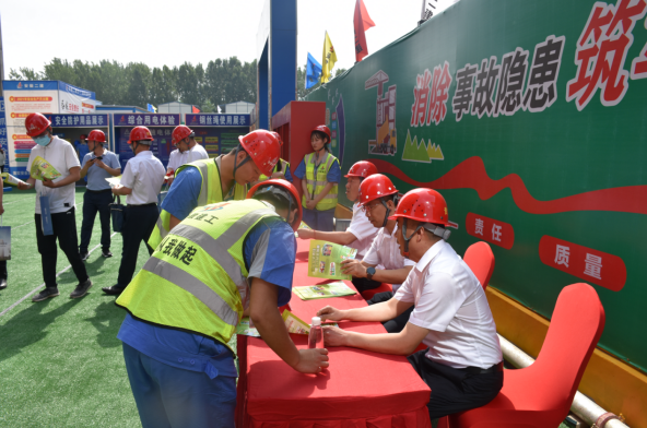 上午8點30分活動開始,活動由副總經理葉和永主持。全體職工在安全總監曹建的帶領下進行了安全宣誓。隨后,安全管理部副主任賈賢財組織大家進行安全承諾簽名、安全咨詢及消防應急救援演練活動。公司所屬各單位、項目部也同步開展了啟動儀式。