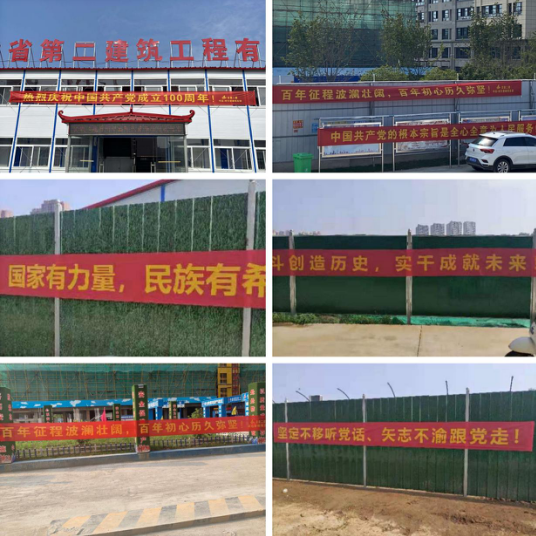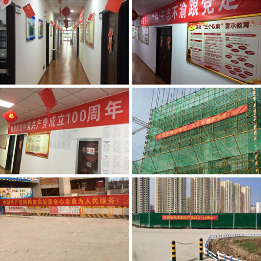 鑄就百年輝煌,書寫千秋偉業。為迎接中國共產黨成立100周年,六分公司機關及所屬項目部紛紛懸掛張貼了有關慶祝中國共產黨成立100周年的標語,營造濃厚的宣傳氛圍,把黨史學習教育進一步推向深入,大力營造“黨的盛典、人民的節日”濃厚氛圍,充分展示中國共產黨百年光輝歷程、偉大成就和寶貴經驗,全面營造濃厚氛圍, 共慶黨的百年華誕,大力唱響共產黨好、社會主義好,改革開放好、偉大祖國好、各族人民好的時代主旋律。