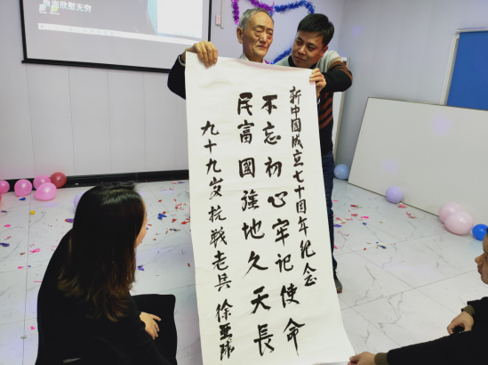 31日下午,項目職工包起一盤盤熱氣騰騰的餃子,歡迎前來參加晚會的嘉賓。晚7點半,聯(lián)歡會正式拉開帷幕。首先,支部書記董建民致辭,對全體干部職工一年來為項目的發(fā)展所做出的貢獻(xiàn)和努力表示肯定和感謝,并向廣大職工及其家屬送上了新年的美好祝福。晚會過程中,由項目部女員工編排的舞蹈《浪漫櫻花》令人贊嘆,機關(guān)員工李丹然的魔術(shù)表演《新貴妃醉酒》讓人驚喜連連,由安徽省新四軍歷史研究會淮海委員會征修、周芳琴聯(lián)袂出演的小品《賣菜》令人捧腹大笑,《成都》、《一生所愛》、《隱形的翅膀》等歌曲串燒給大家獻(xiàn)上了一場視聽盛宴,朗誦《回家過年》營造出濃濃的節(jié)日氛圍。聯(lián)歡現(xiàn)場,背夾氣球、比劃猜謎等游戲更是掀起一波又一波的高潮。接近尾聲時,張振山會長帶來了安徽省新四軍歷史研究會淮海委員會原會長徐亞球的一副珍貴的書法,并祝愿安徽二建公司蓬勃發(fā)展、再創(chuàng)輝煌!