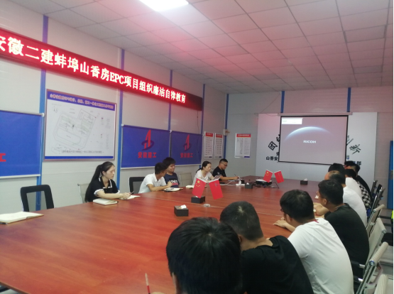 8月11日中午,一分公司黨支部書記倪海霞在蚌埠山香安置房EPC項目部開展廉潔從業教育,強調作風建設的重要性,組織全體職工學習《工程建設領域廉潔風險防控清單》。