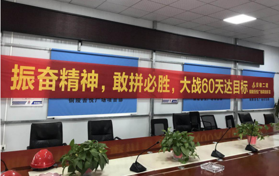 銅陵吾悅廣場項(xiàng)目計(jì)劃完成競賽產(chǎn)值6000萬,為保證該目標(biāo)的完成,項(xiàng)目負(fù)責(zé)人與勞務(wù)班組簽訂勞動競賽責(zé)任狀,對表現(xiàn)優(yōu)異的班組予以獎勵,現(xiàn)場懸掛各類條幅宣傳大干60天勞動競賽精神。