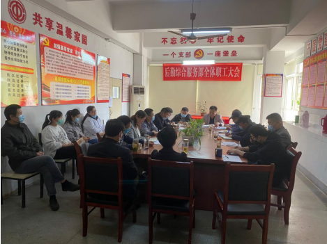 2020427下午,后勤綜合服務部召開職工大會,16名職工參加,公司總經理助理、市場管理部主任蒯家江會指導。