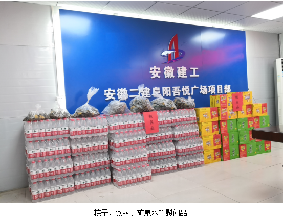 項目黨支部為節日期間仍在忙碌的職工送去礦泉水、飲料、粽子及防暑降溫藥等,并致以節日的問候,對大家在節假日仍堅守崗位,積極投身項目施工建設表示感謝。農民工楊師傅說:“通過此次端午節慰問,不僅讓我們在異地感受到濃濃大家庭的溫暖,同時也感受到安徽二建作為國企對我們的社會關懷”。在隨后聚餐過程中,項目部舉行了吃粽子比賽和端午節文化知識有獎搶答等活動,不僅豐富了大家關于端午節的知識,同時也讓大家感受到中國傳統節日的文化魅力。