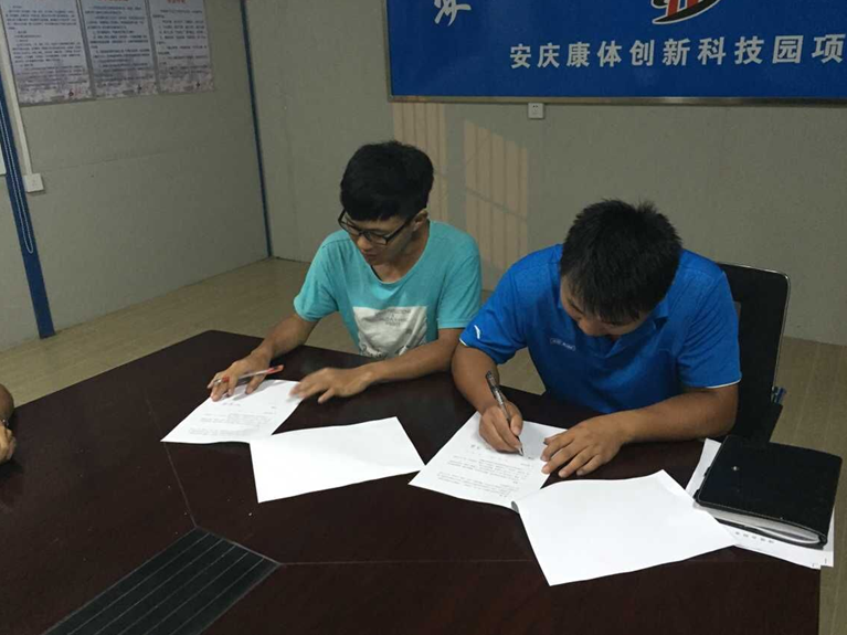 日前,第三分公司承建的安慶臨港經濟開發區創新產業園(標準化廠房)項目部,由于項目新員工較多,為了引導新員工在崗位上更好的學習,幫助新員工在崗位上更快的成才,培育年輕崗位能手,提升項目整體素質和業務水平,經項目領導班子討論決定,在項目內部開展“導師帶徒”活動,6位項目主要骨干分別與13位實習生簽訂了“導師帶徒”協議。