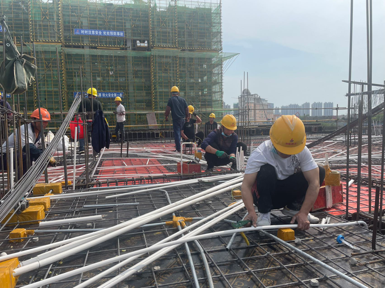 蚌埠市因疫情封城,項目管理人員面對工期緊、任務重的嚴峻形勢,為將目標節點抓緊、抓實,以“起步就是沖刺”的大干姿態,堅守施工一線,搶抓工期進度,主動聯系溝通當地防疫辦及住建局等建設主管部門,克服重重困難,組織人、材、機進場,確保工程進度平穩推進。