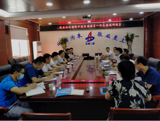 6月1日下午,安徽水安建設(shè)公司副總經(jīng)理孫西振帶隊赴公司開展調(diào)研交流,公司黨委副書記、總經(jīng)理李建成親切接待,并主持召開座談會。副總經(jīng)理葉和永,相關(guān)部門負(fù)責(zé)人參加座談。
