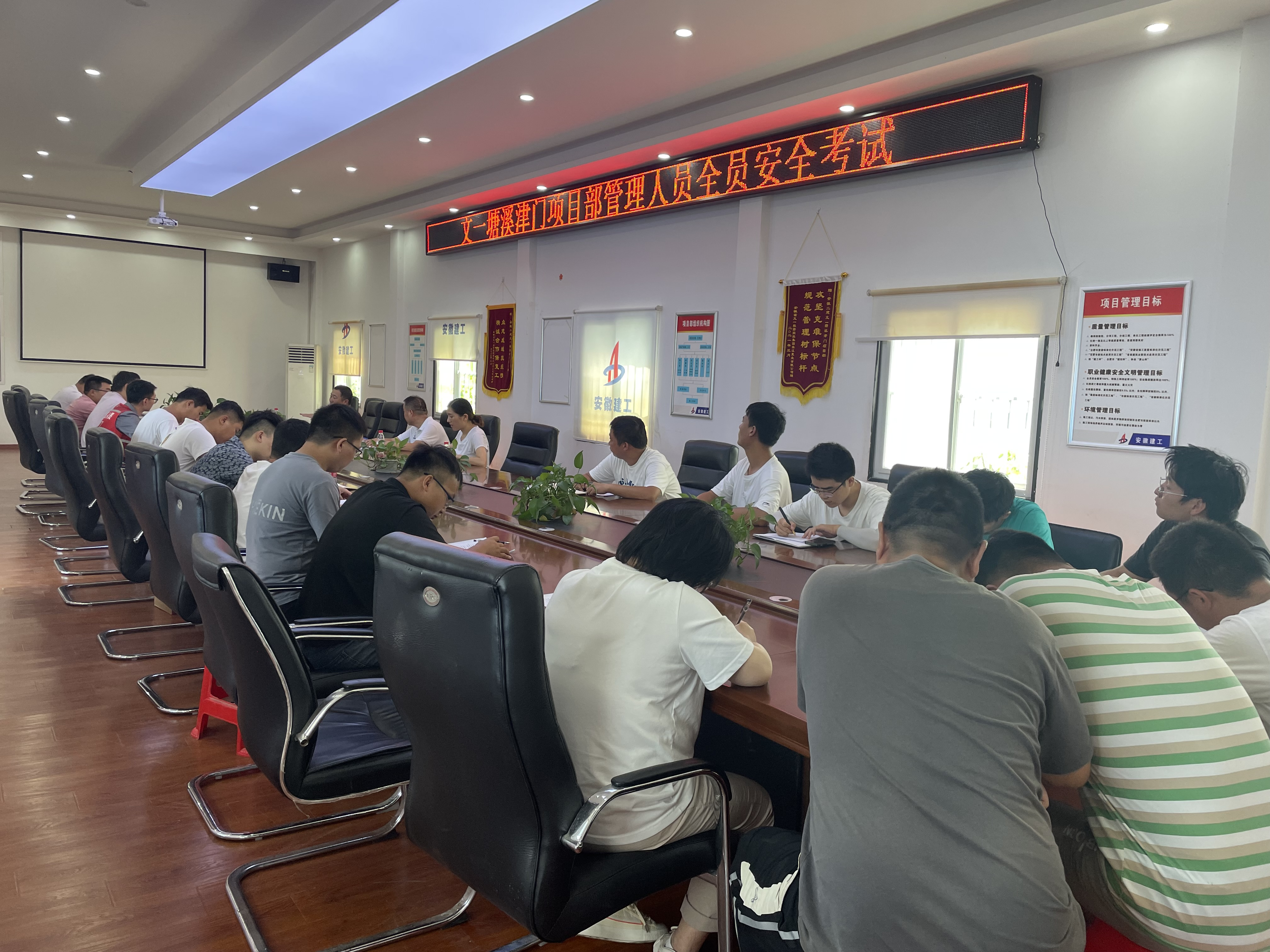 檢查組首先對施工現場機械設備運行情況、配電系統、安全防護系統等重點區域及項目現場茶水供應情況進行檢查,抽查項目勞保用品、防暑降溫藥品發放情況及特種作業人員持證情況,隨后就“百日行動”、“高處作業專項行動”對項目全體管理人員進行了宣傳教育培訓并組織安全知識考試。
