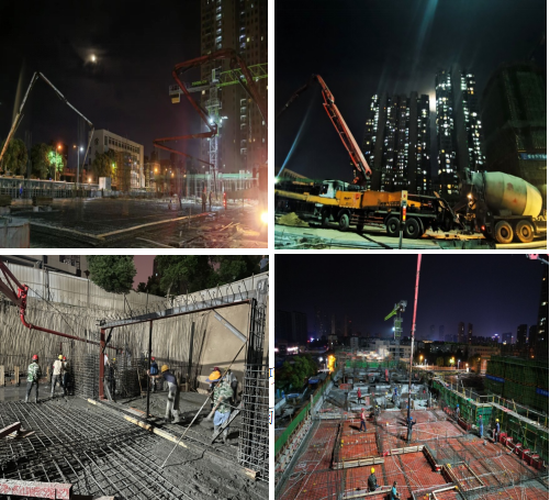 為完成各項(xiàng)節(jié)點(diǎn)計(jì)劃,項(xiàng)目管理人員帶領(lǐng)各勞務(wù)班組“搶晴天、戰(zhàn)雨天,牛毛細(xì)雨當(dāng)好天”,搶抓工期,比拼進(jìn)度;進(jìn)入夏季以來(lái),持續(xù)高溫,市氣象部門接連多次發(fā)布橙色預(yù)警,戶外溫度常達(dá)40度以上,為確保工人作業(yè)安全,項(xiàng)目部及時(shí)調(diào)整施工作業(yè)時(shí)間,在確保施工安全的前提下,采取“干兩頭、歇中間”的施工措施,組織班組加班加點(diǎn)分批交叉作業(yè),呈現(xiàn)出“月亮底下當(dāng)白天,不給黑夜留時(shí)間”的大干火熱場(chǎng)面。同時(shí)項(xiàng)目部每日在高溫時(shí)段為現(xiàn)場(chǎng)施工人員送去防暑藥品和降溫飲品,防止意外發(fā)生。隨著最近氣溫逐漸轉(zhuǎn)涼,整個(gè)施工現(xiàn)場(chǎng)挖機(jī)聲、機(jī)械聲、泵送聲相互交織;夜色下施工現(xiàn)場(chǎng)燈光如晝,人頭躦動(dòng);渣土車、混凝土罐車川流不息往返穿梭,現(xiàn)場(chǎng)各個(gè)工作面的施工人員都卯足勁往前沖。