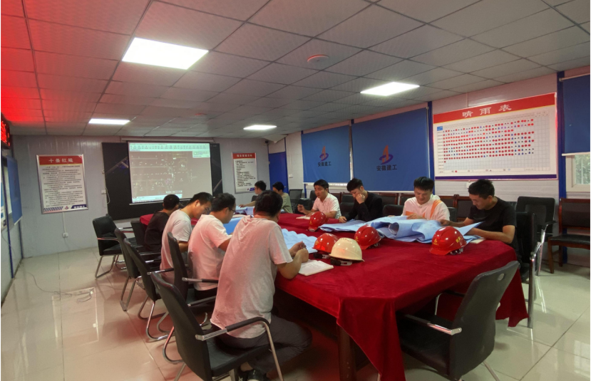 國(guó)慶期間,安徽二建阜陽(yáng)沃達(dá)星海城項(xiàng)目晚間工作會(huì)議現(xiàn)場(chǎng)